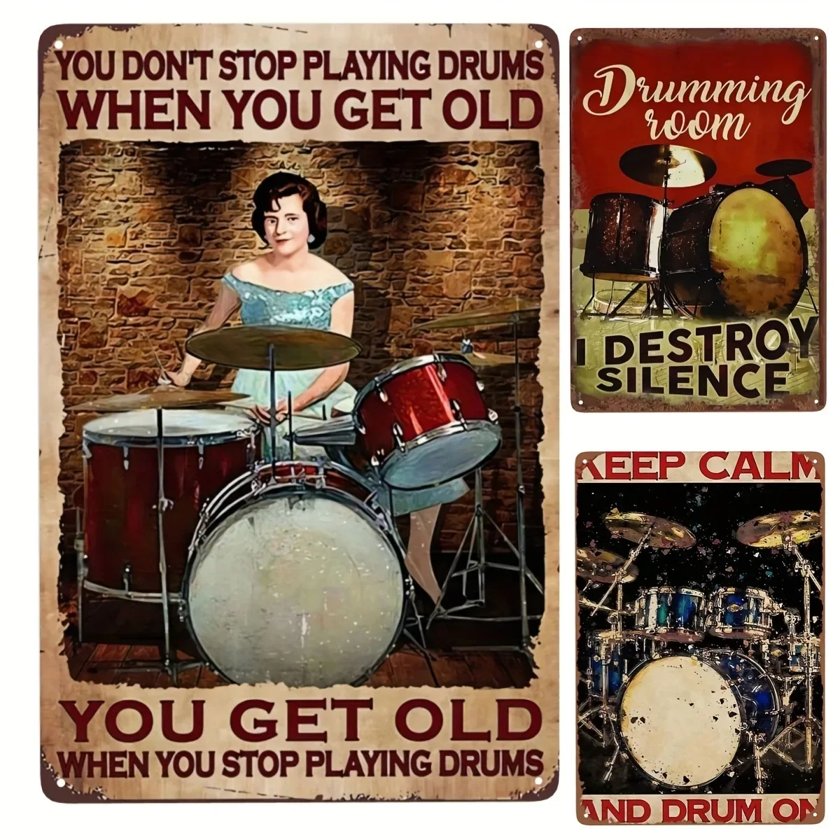 Vintage Drummer Charm Metal Tin sing Poster