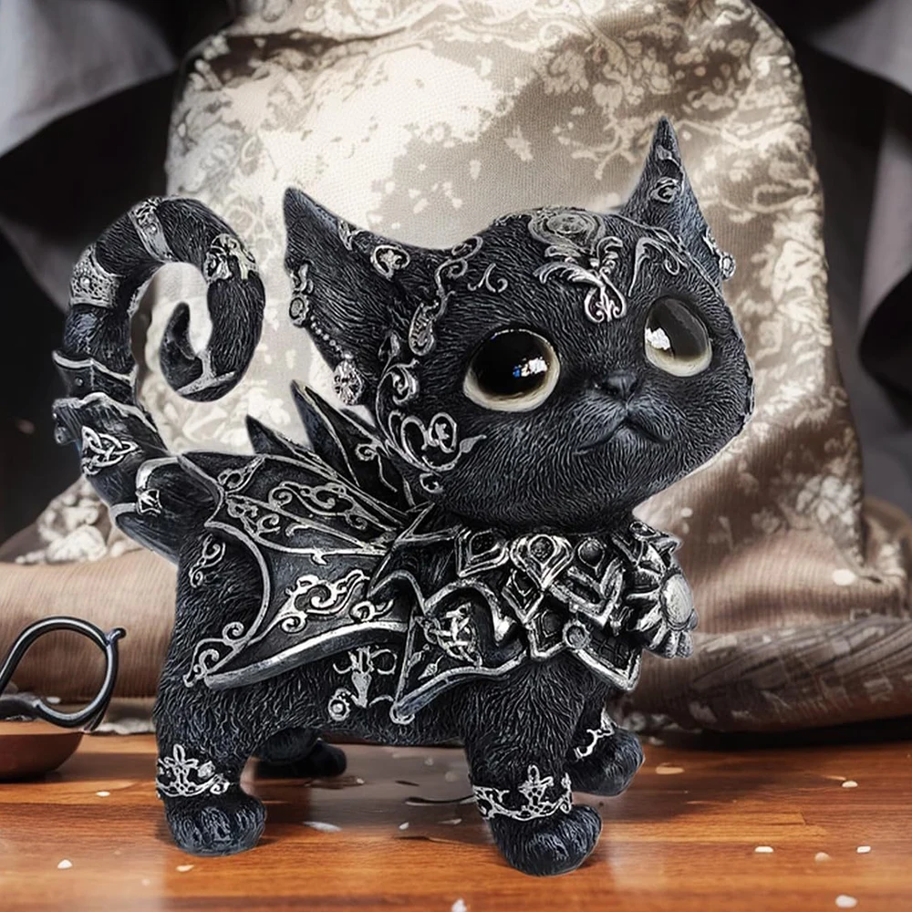 Mystical Black Cat Statue Halloween Decoration Elegant Accented Kitten Sculpture Intricate Gothic Home Decor Enchanting Figurine